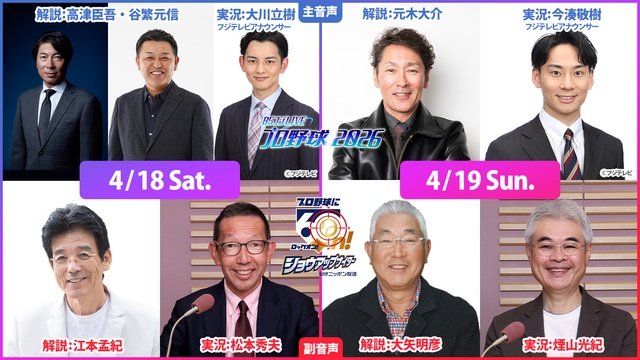 江本孟紀、高津臣吾、元木大介らが解説 BSフジ×ニッポン放送「ヤクルト×巨人」で再タッグ
