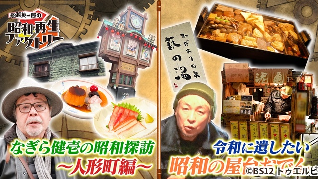 BS12 トゥエルビでは、2月12日に「船越英一郎の昭和再生ファクトリー」(木曜午後9:00)を放送。「なぎら健壱の昭和探訪・人形町」と「昭和遺産~屋台おでん~」の2本立てでおくる。 …