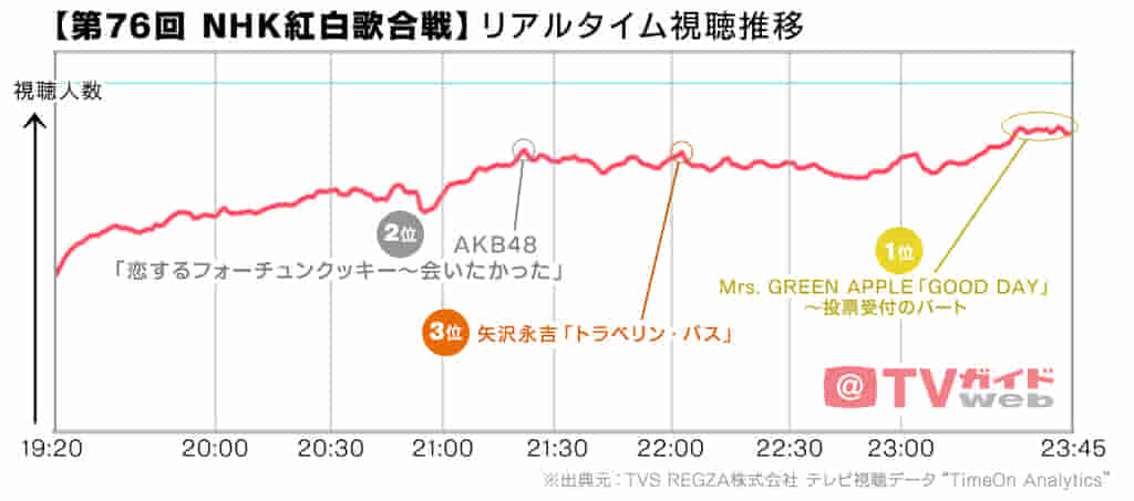 | 1 | 第76回NHK紅白歌合戦(12/31) | NHK総合 | 100.0 |
